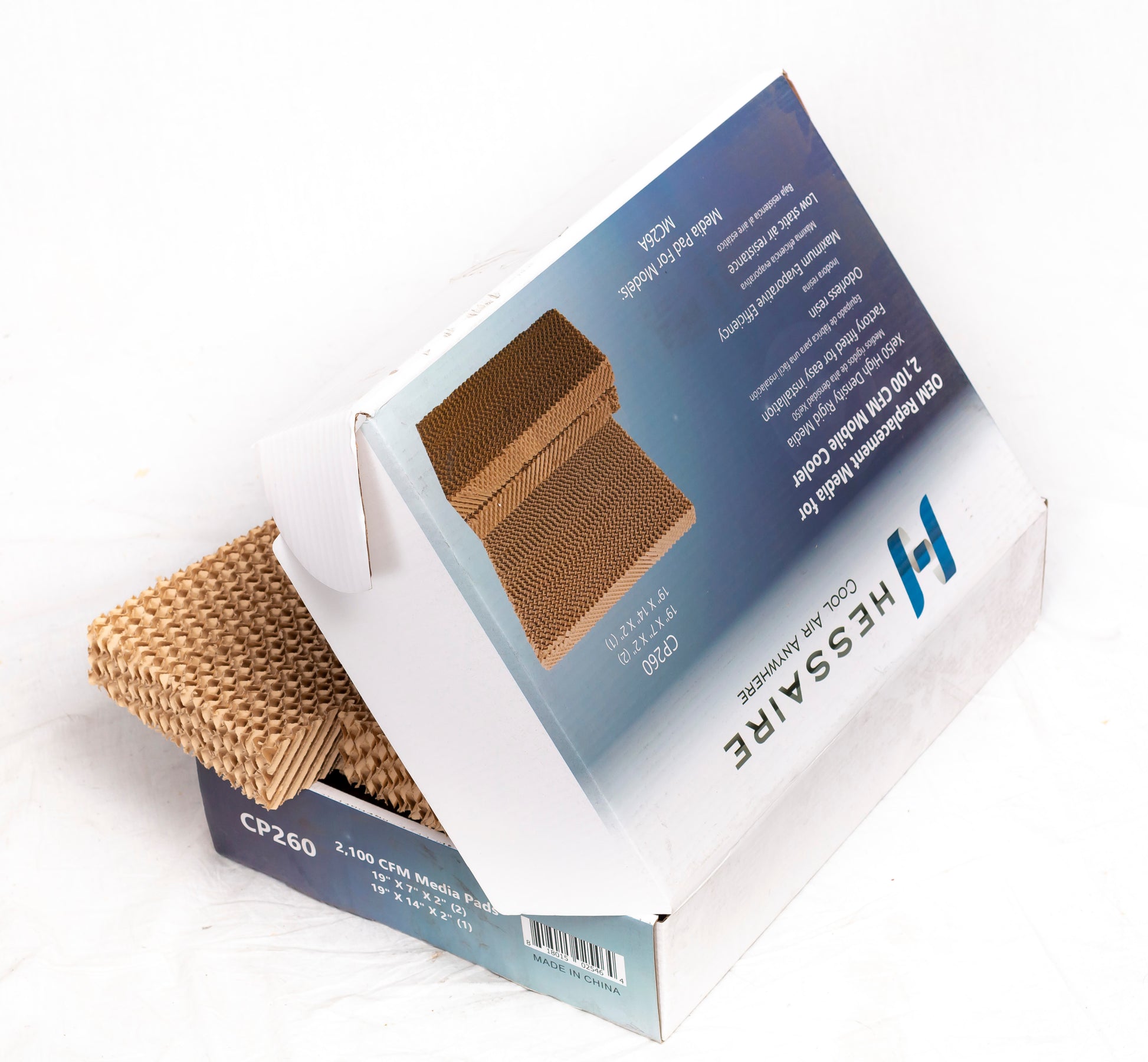 The CP260 Media Pad Set is specifically designed to work with 2100 CFM Hessaire Mobile Coolers. This 14 in. x 20 in. authentic Hessaire replacement media pad set fits MC26 models.